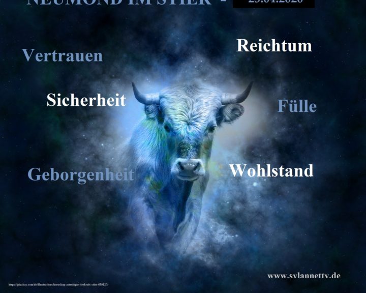 Neumond im Stier – hilft dir in Selbstliebe und Selbstvertrauen zu kommen und Sicherheit und Geborgenheit zu spüren. EINSSEIN mit der Quelle und getragen sein von Mutter Erde bringt den Wohlstand, Fülle und Reichtum in